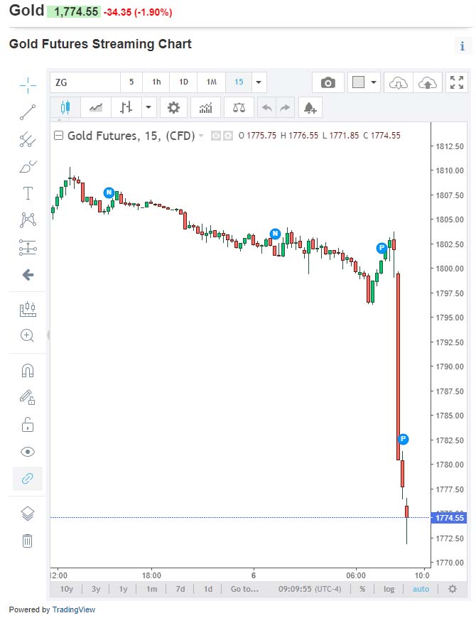 అమెరికాలో ఉద్యోగాల సంఖ్య జులై నెలలో కూడా భారీగా పెరగడంతో డాలర్ బలపడింది. నాన్ ఫామ్ జాబ్స్ (వ్యవసాయేతర ఉద్యోగాలు) జులై నెలలో 9.43 లక్షల పెరిగాయి. మార్కెట్ విశ్లేషకుల అంచనాలకు మించి ఉద్యోగ అవకాశాలు పెరగడంతో డాలర్ 0.4 శాతం పెరిగి 92.61 వద్ద ట్రేడవుతోంది. దీంతో బులియన్ మార్కెట్లో బంగారం,వెండి ధరలు గణీయంగా తగ్గాయి. అమెరికా ఫ్యూచర్స్ మార్కెట్లో ఔన్స్ బంగారం దాదాపు 2 శాతం క్షీణించి 1774 డాలర్లకు పడిపోయింది. ఇక వెండి దాదాపు మూడు శాతం క్షీణించింది. దీంతో భారత్లో ఎంసీఎక్స్లో బంగారం (అక్టోబర్ కాంట్రాక్ట్) రూ. 46,856కు క్షీణించింది. క్రితం ముగింపుతో పోలిస్తే రూ. 48,001 నుంచి రూ. 46,856 క్షీణించింది. వెండి కూడా రెండు శాతం క్షీణించింది.