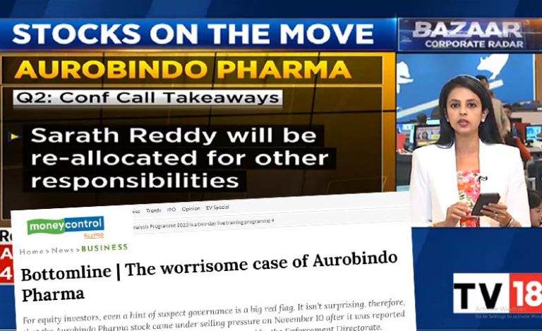 అరబిందో ఫార్మా కంపెనీ కార్పొరేట్ గవర్నన్స్ (కంపెనీ నిర్వహణ) విషయమై స్టాక్ మార్కెట్ అనలిస్టులు తీవ్ర ఆందోళన వ్యక్తం చేశారు. సెప్టెంబర్ నెలతో ముగిసిన త్రైమాసిక ఫలితాలపై...