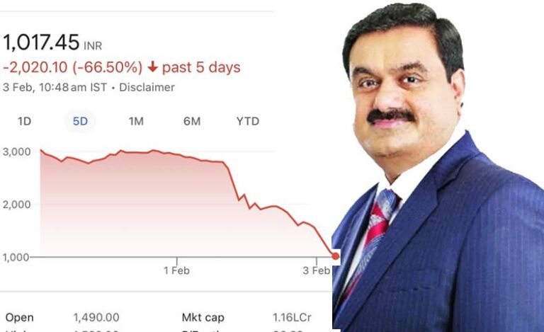 హిండెన్బర్గ్ రీసెర్చి నివేదిక వెలువడిన తరవాత అదానీ గ్రూప్ షేర్ల మార్కెట్ విలువ రూ. 8,20,000 కోట్లకు పైగా క్షీణించిందని రాయిటర్స్ వార్తా సంస్థ పేర్కొంది. ముఖ్యంగా...