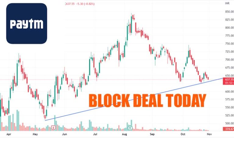 బ్లాక్డీల్ కారణంగా పేటీఎం షేర్ ఇవాళ ఓపెనింగ్లోనే పది శాతం క్షీణించింది. రెండు రోజుల్లో ఈ షేర్ దాదాపు 14 శాతం క్షీణించింది. నిన్న ఈ షేర్...