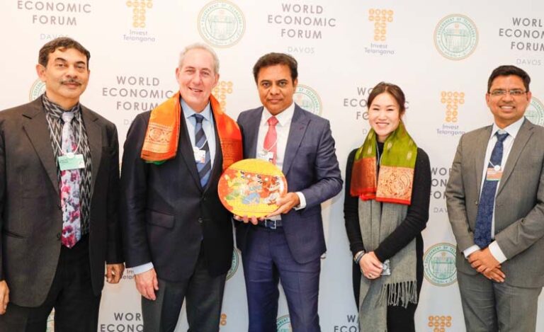 దావోస్ వేదికగా తెలంగాణ రాష్ట్రానికి పెట్టుబడుల ప్రవాహం కొనసాగుతున్నది. దావోస్లో జరుగుతున్న వరల్డ్ ఎకనమిక్ ఫోరమ్ సదస్సులోని తెలంగాణ పెవిలియన్లో ఐటీ, పరిశ్రమల మంత్రి కేటీఆర్తో పెప్సికో...